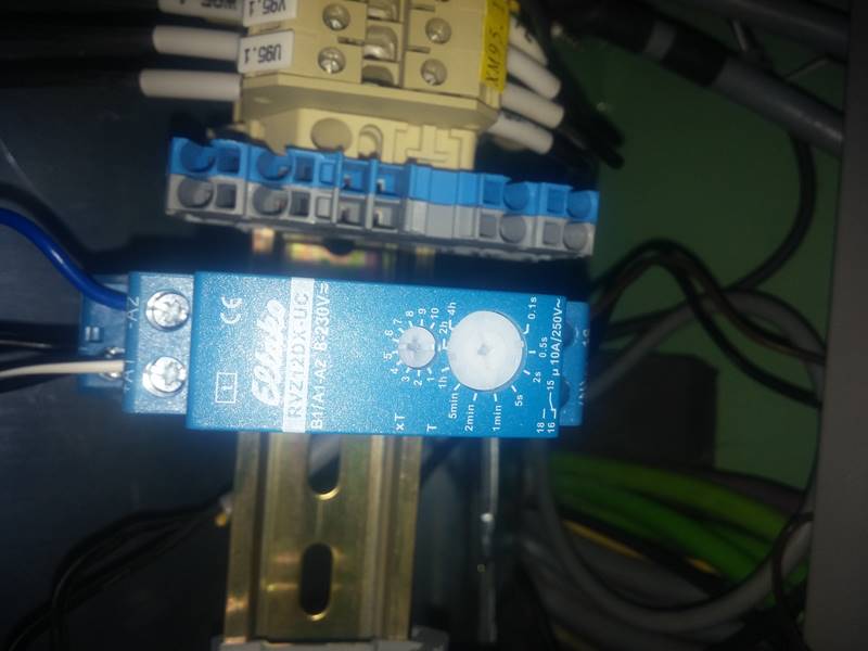 DIN ray montajlı modüller, röleler ve kontrol üniteleri.